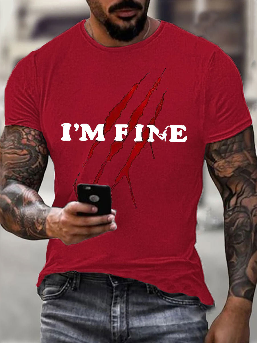 Men's I'm Fine Bloody Art Printed Casual T-Shirt