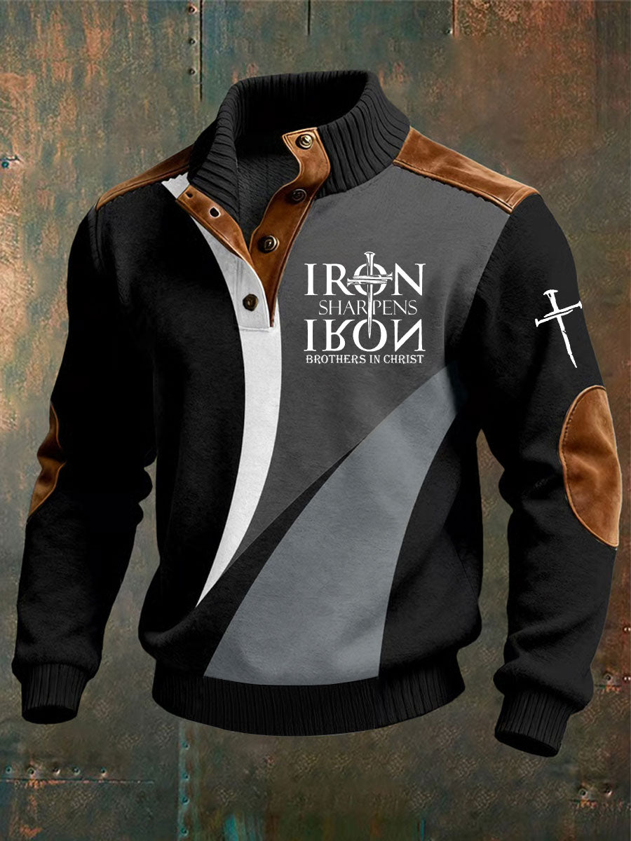 Men's Vintage Faith Cross Print Casual Button-Up Sweatshirt