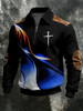 Men's Vintage Faith Cross Zipper Stand Collar Sweatshirt