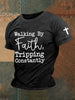 Men's Walking By Faith Tripping Constantly Printed Casual T-Shirt