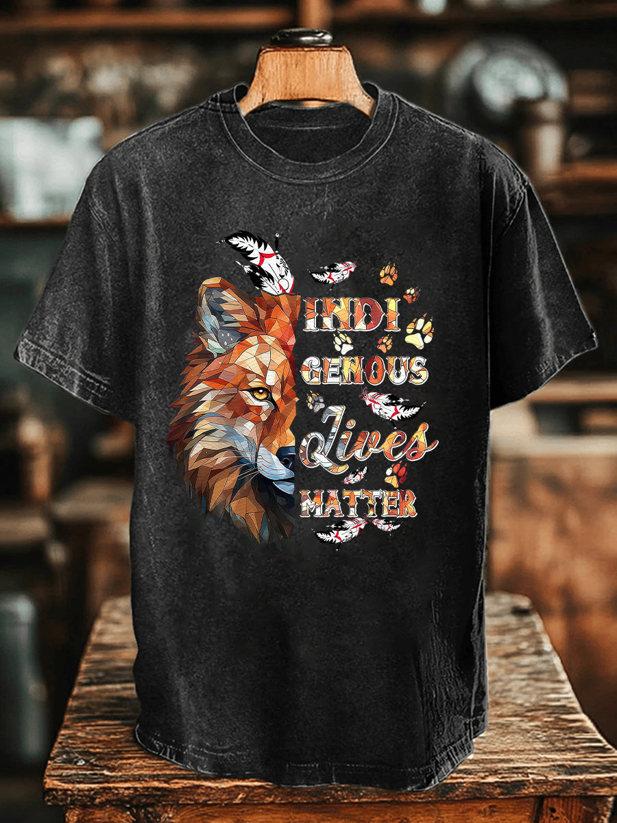 Men's Wolf Indigenous Lives Matter Printed Casual T-Shirt