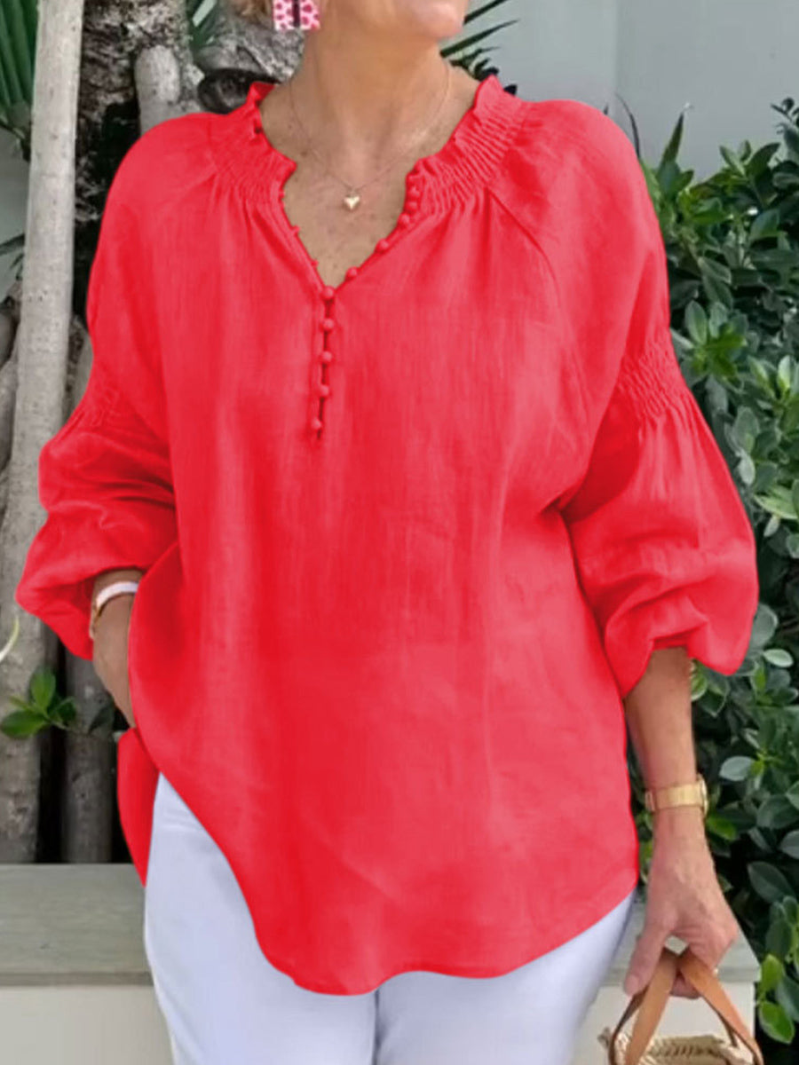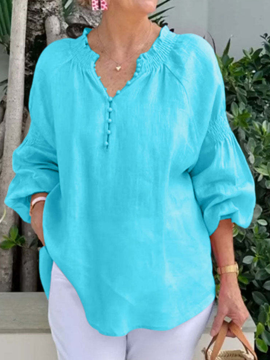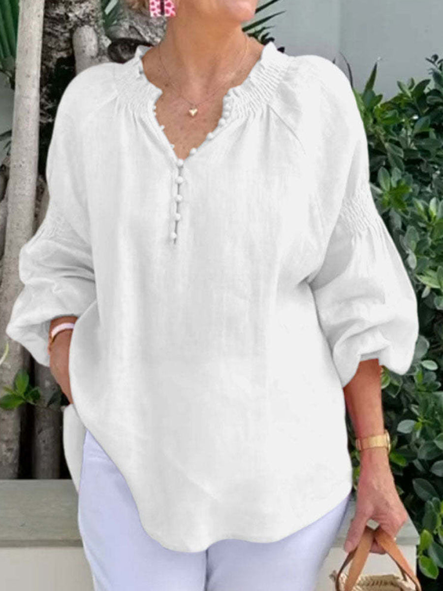 Printed V-Neck Lapel Button Vintage Casual Long Sleeve Shirt