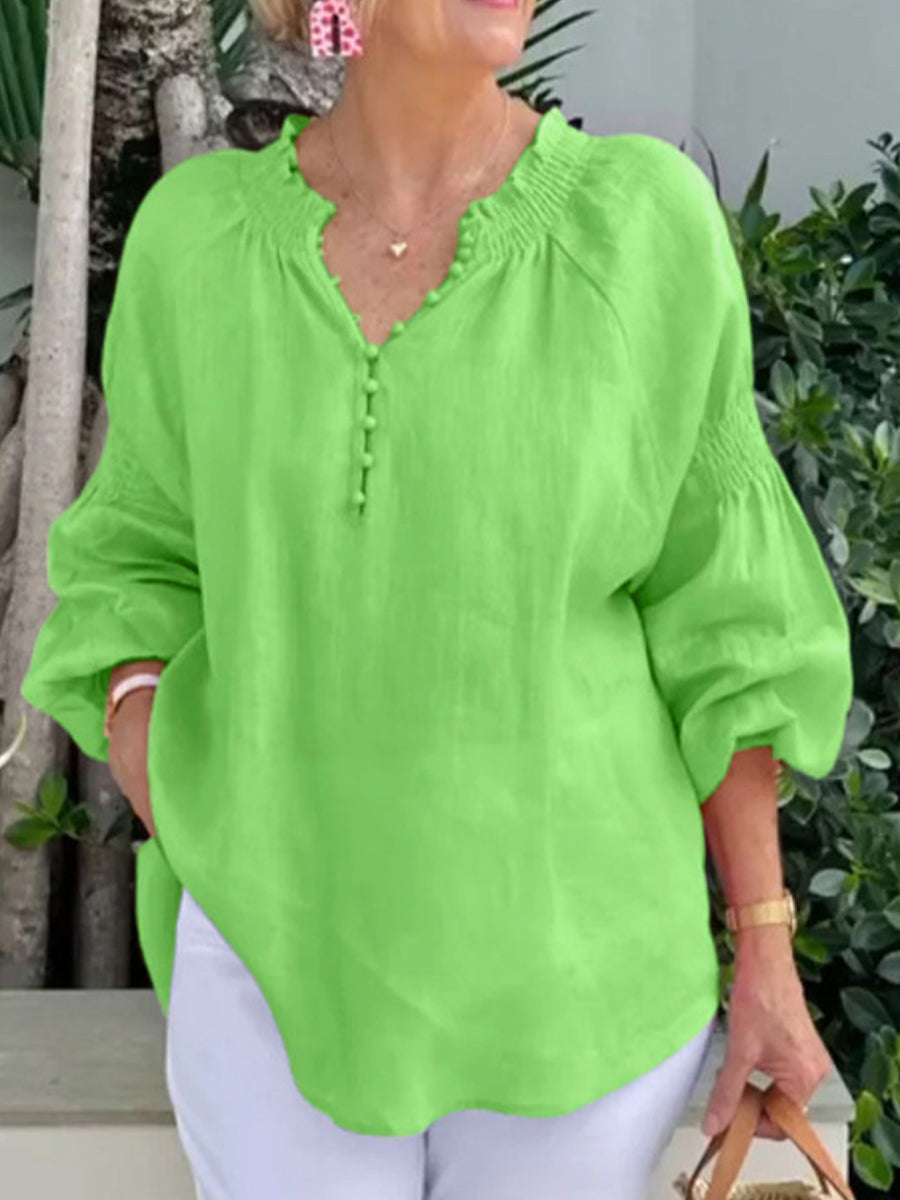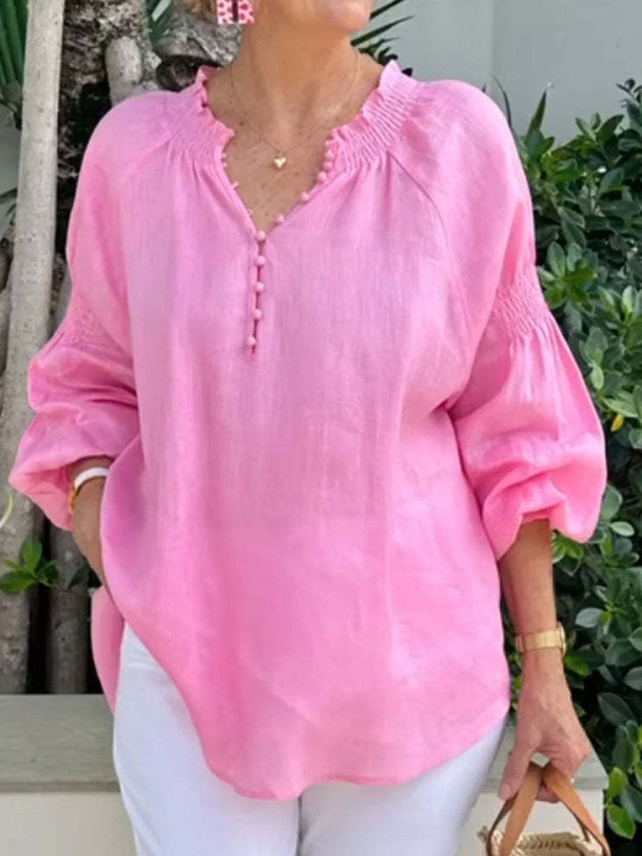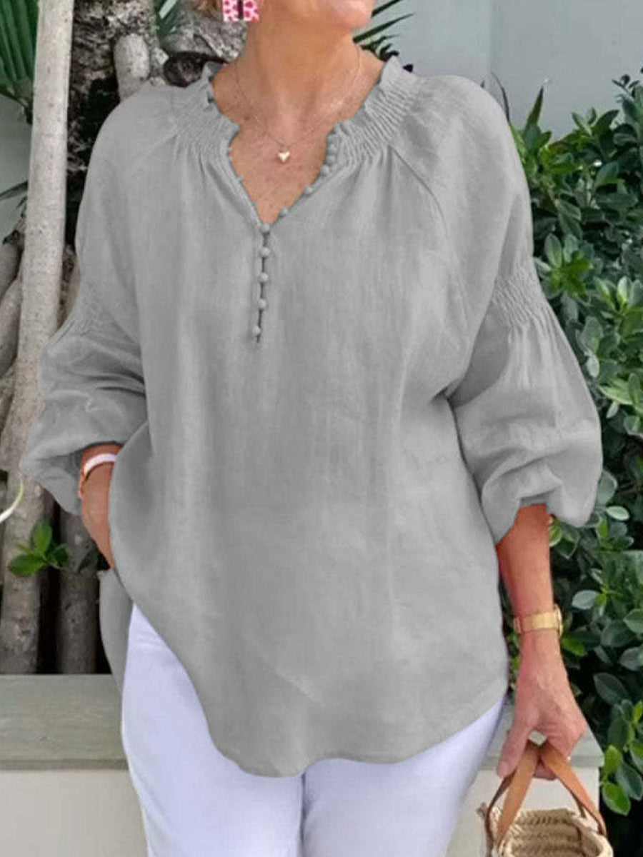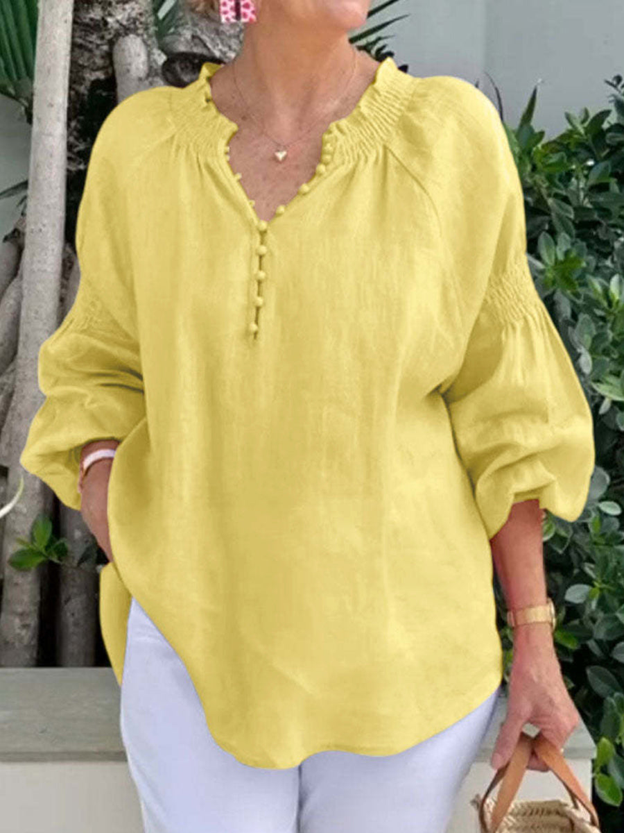 Printed V-Neck Lapel Button Vintage Casual Long Sleeve Shirt