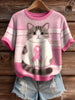 Women's Breast Cancer Awareness Inspired Cat Felt Art Knit Top