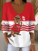 Women's Canadian Maple Leaf Beaver Print Casual V-Neck Long Sleeve Top