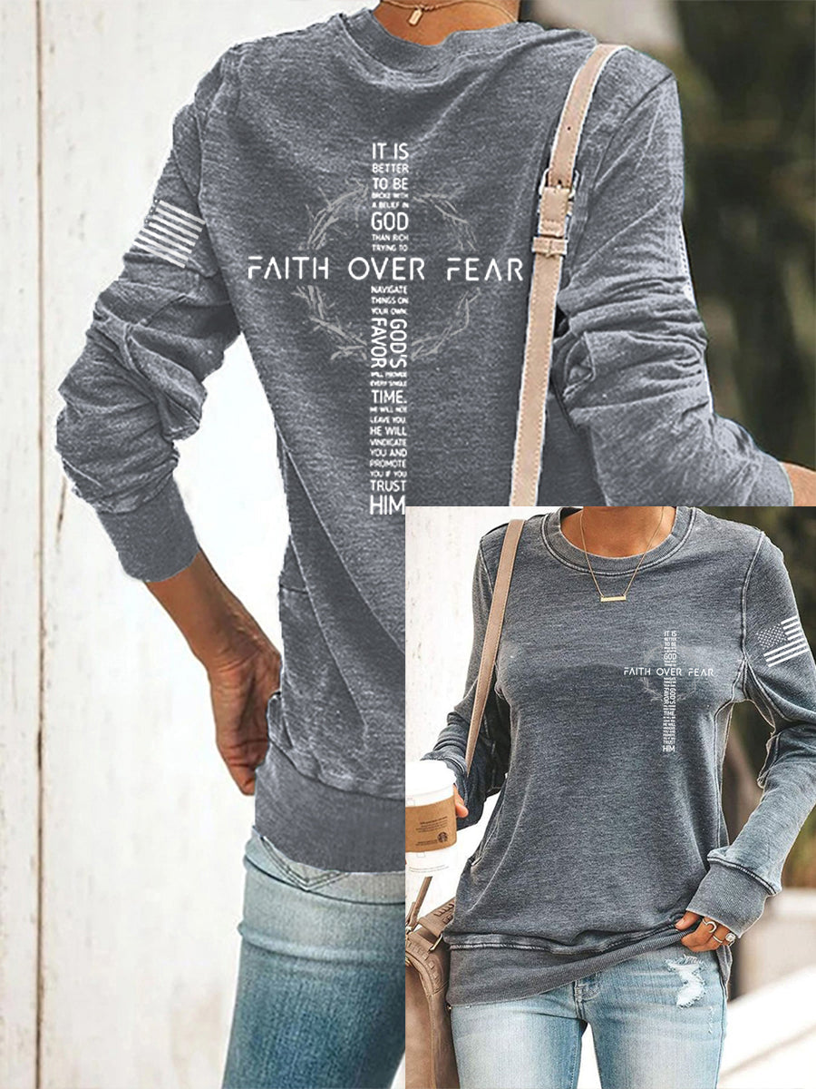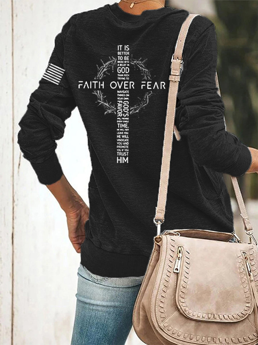 Women's Faith Over Fear USA Flag Print Casual Sweatshirt
