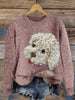 Women's Fuzzy Dog Plush Patchwork Knit Sweater