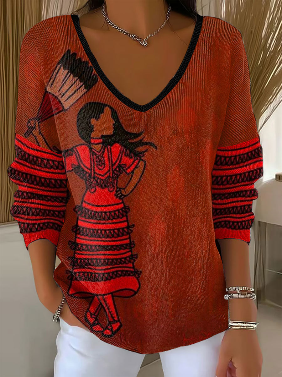 Women's Indigenous Sister Art Print V-Neck Tops