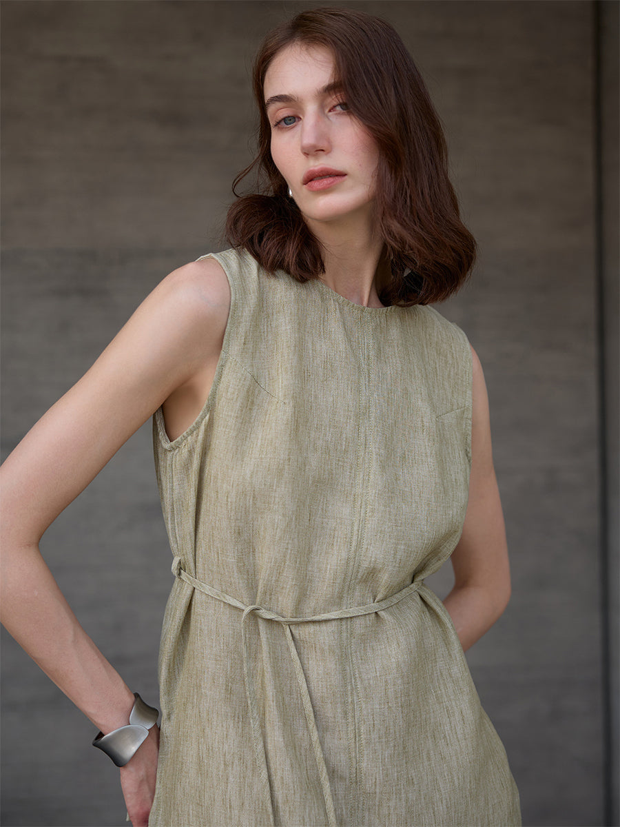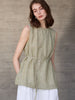Women's Linen Round Neck Lace-Up Loose Sleeveless Top