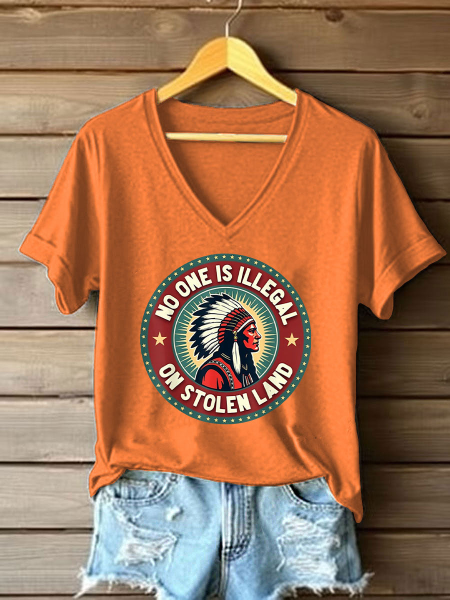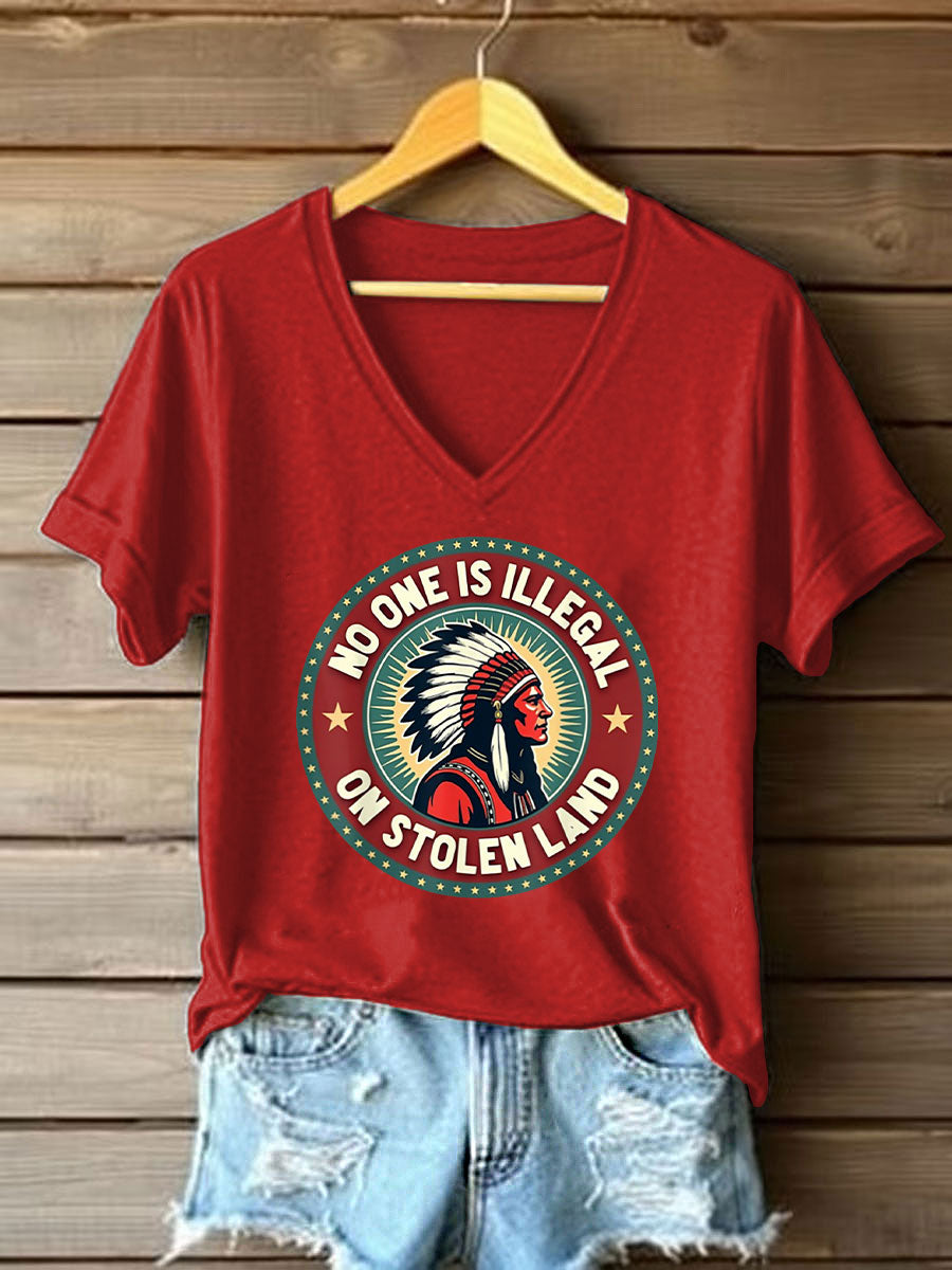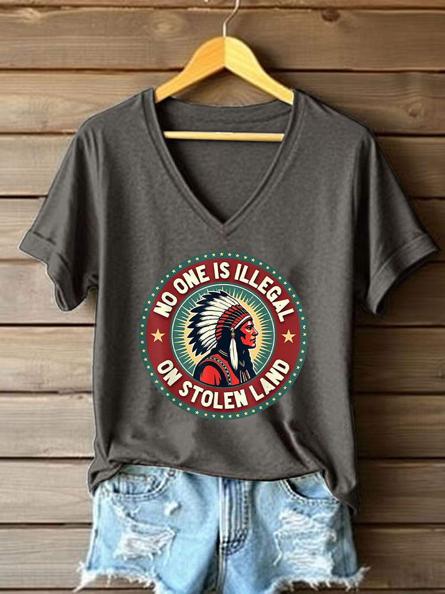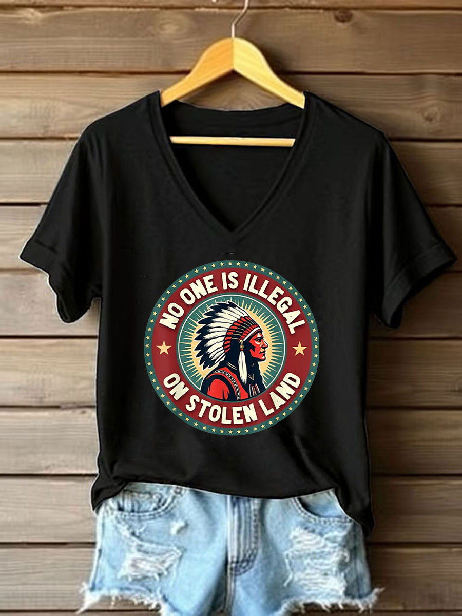 Women's Native American No One Is Illegal on Stolen Land Printed Casual T-Shirt