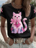 Women's Pink Cat Pink Ribbon Breast Cancer Awareness Support Tee