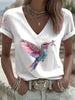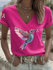 Women's Pink Ribbon Print Casual V-Neck T-Shirt