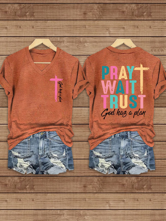 Women's Pray Wait Trust Printed Casual T-Shirt