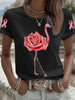 Women's Rose Flamingo Breast Cancer Awareness Short-sleeved T-shirt