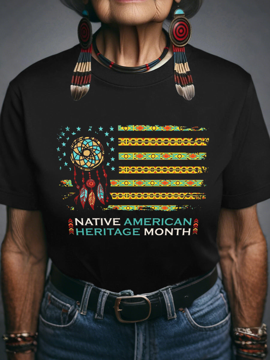 Women's Tribal Dreamcatcher Flag Print T-Shirt