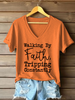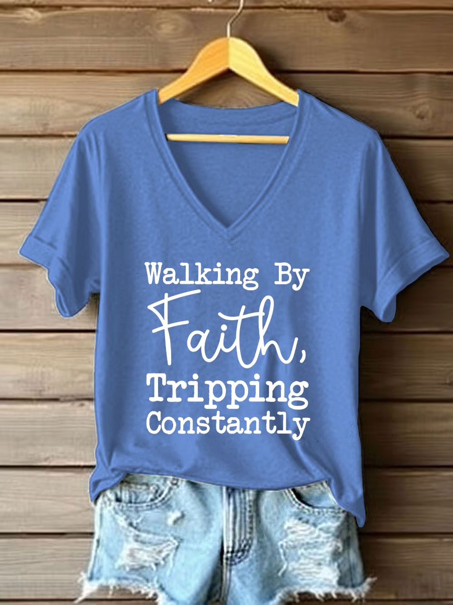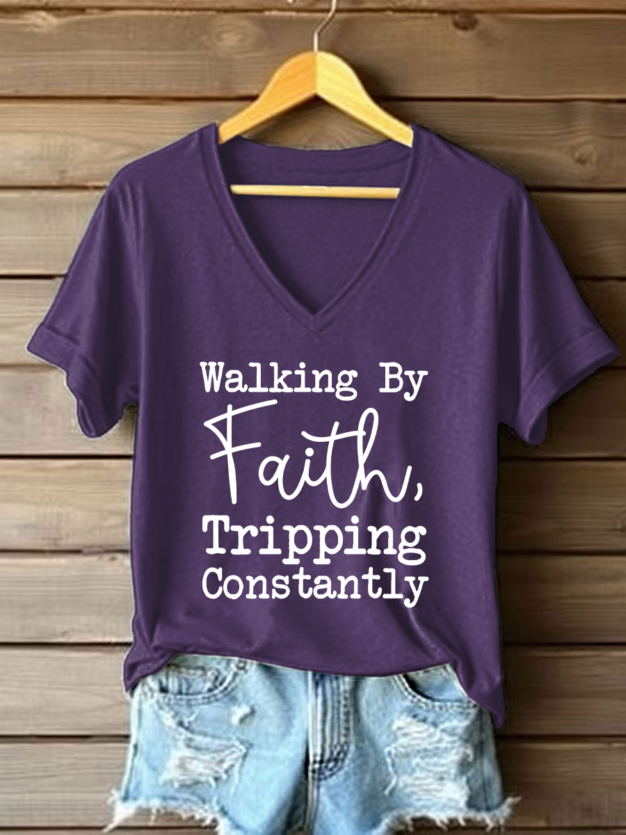 Women's Walking By Faith Tripping Constantly Printed Casual T-Shirt